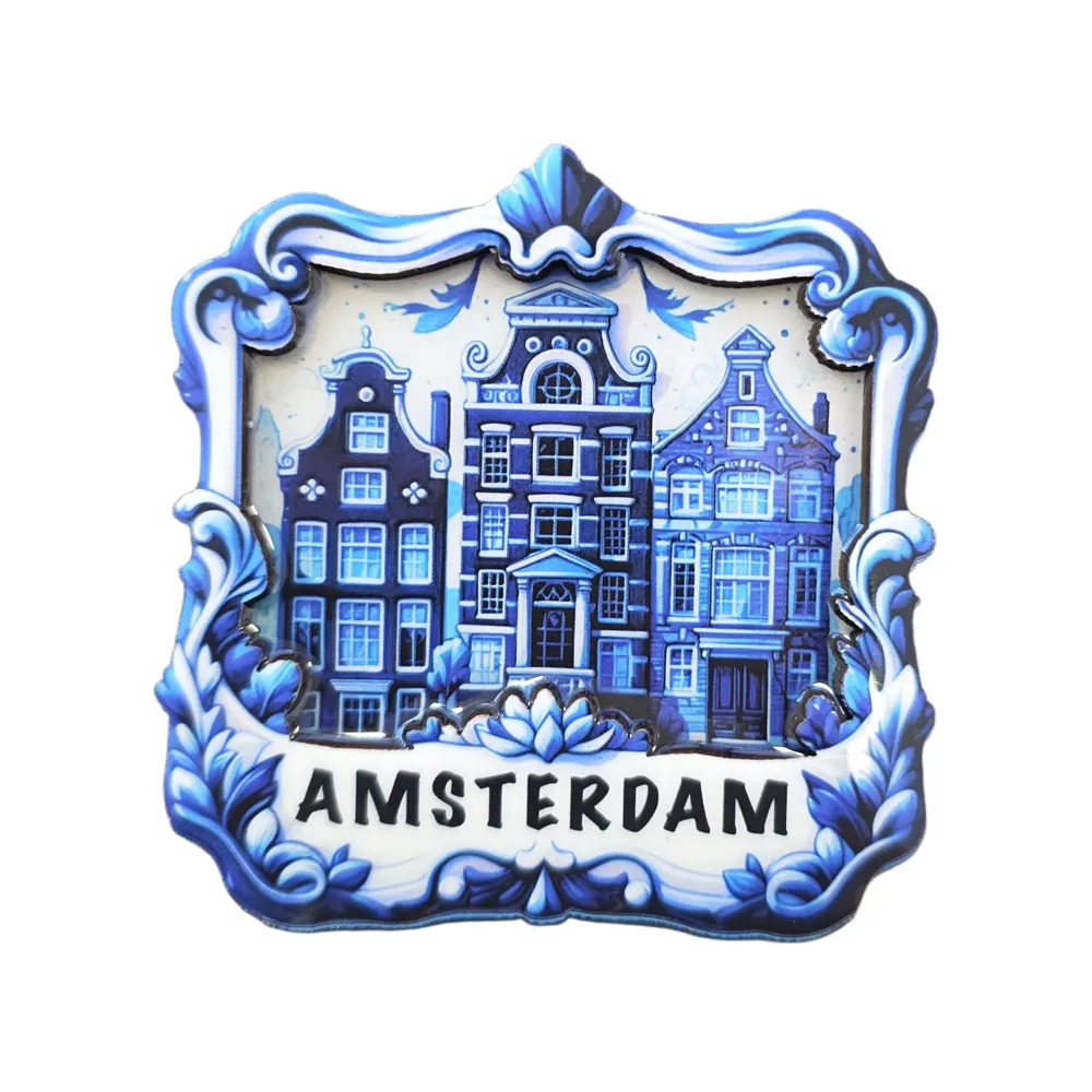 Epoxy magneet Amsterdam grachtenpanden tekst
