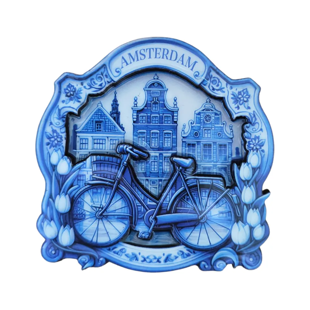 Magneet Delftsblauw Amsterdam fiets en grachtenpanden