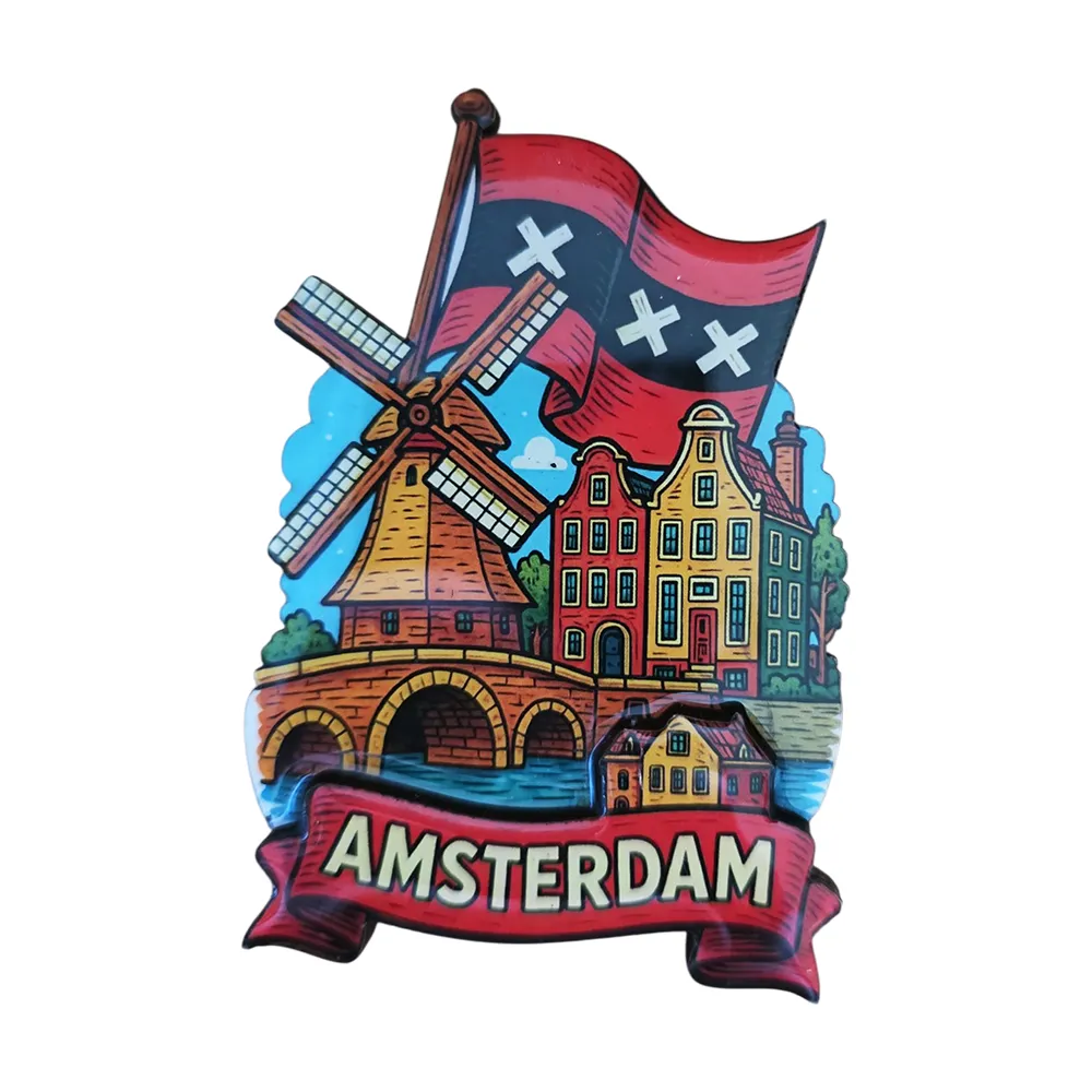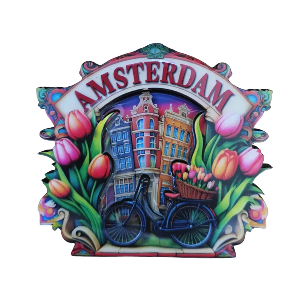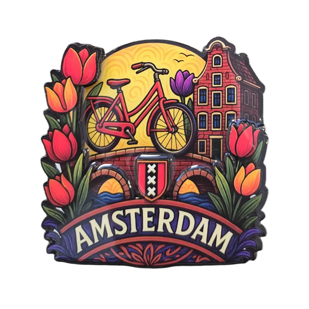 Magneet Amsterdam fiets, tulpen en grachtenpanden
