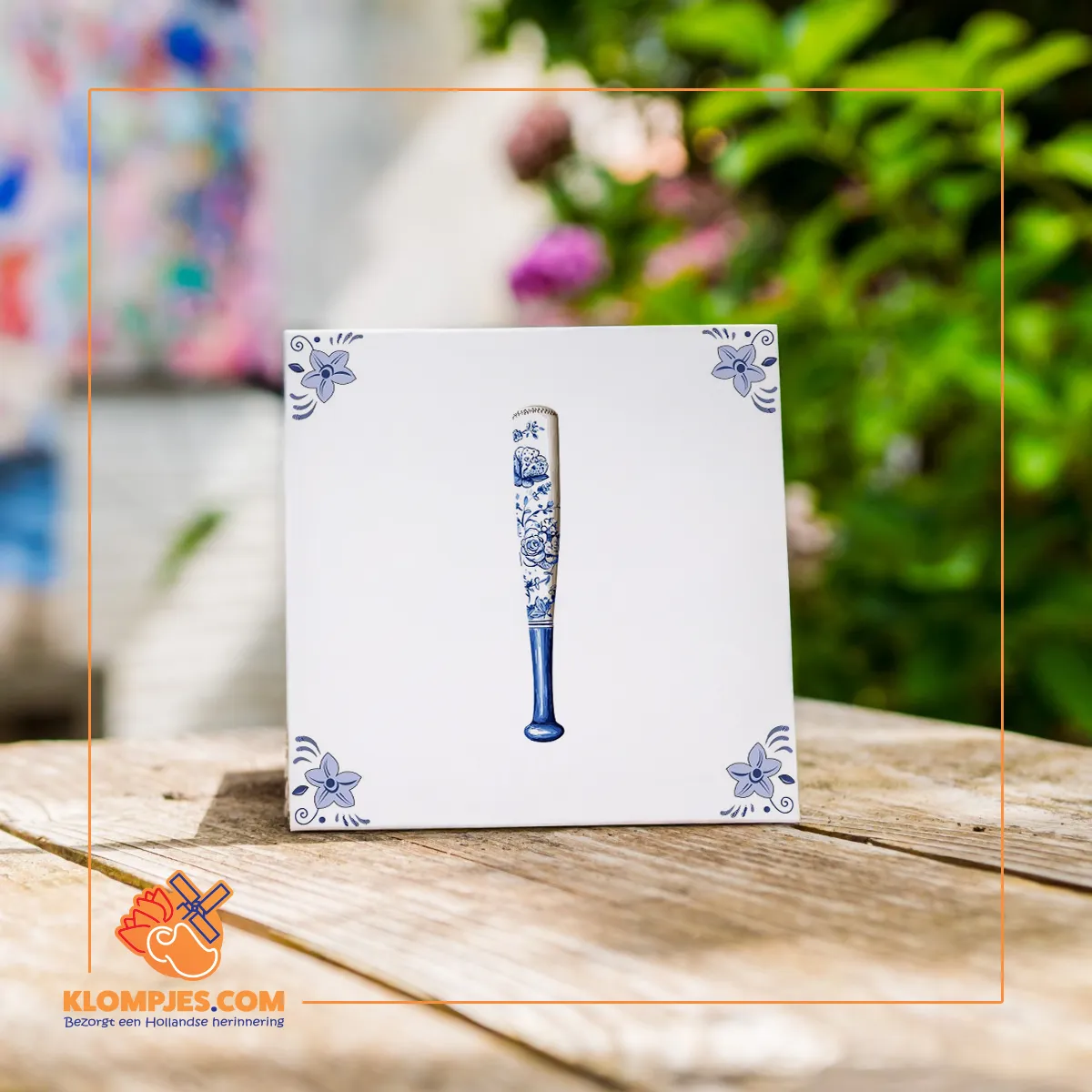 Delfts blauwe keramische tegel met een honkbalknuppel design
