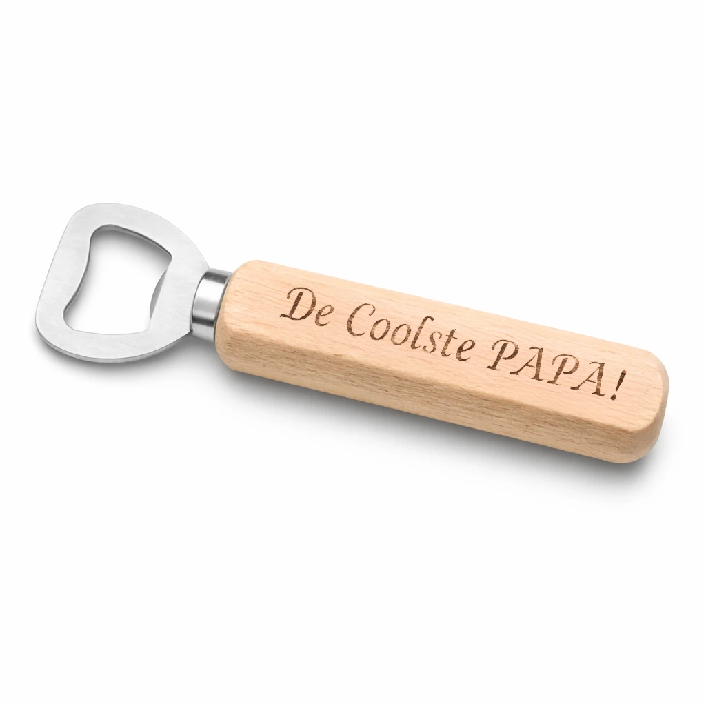 Houten flesopener / bieropener – Gravering met logo of tekst – Per stuk