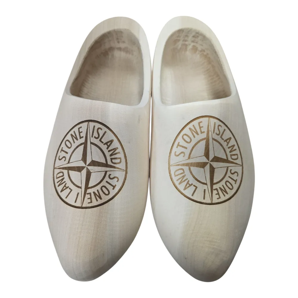 Wilt u Stone Island inbranden op houten klompen? Onze graveerservice brandt dit logo direct in het hout, wat zorgt voor een unieke, duurzame uitstraling. Perfect als promotie-item, relatiegeschenk of als persoonlijk cadeau!