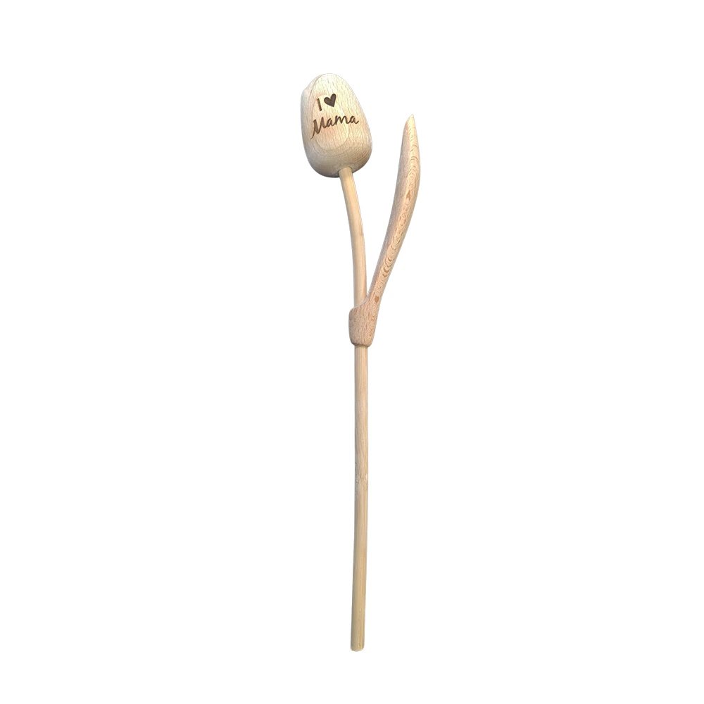 Dankzij het gladde oppervlak en de onbehandelde afwerking komt de gravure mooi en duidelijk naar voren. De houten tulp staat prachtig als decoratie, los of als bosje in een vaas.
