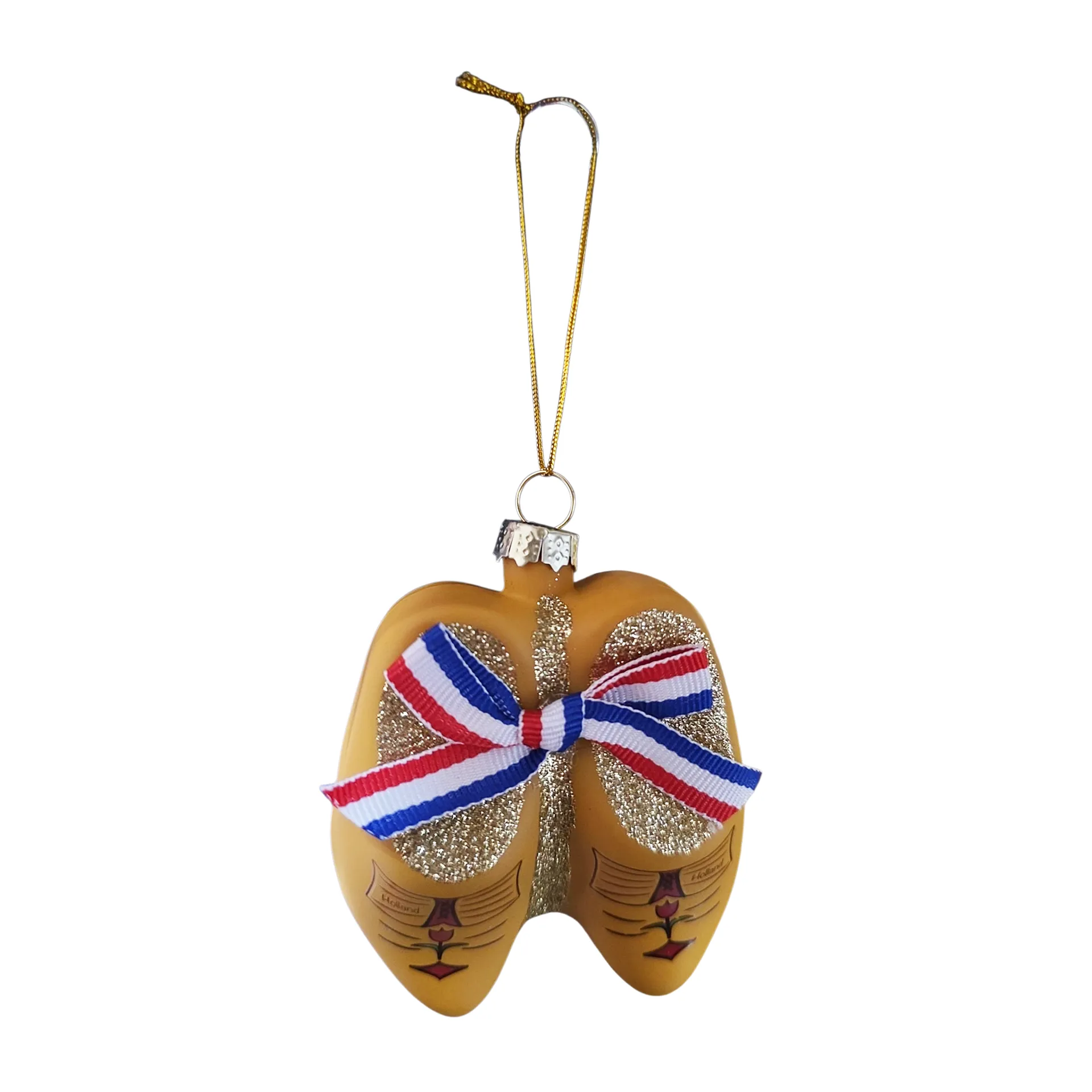 Breng een vleugje Hollandse elegantie in je kerstboom met dit schitterende kerstornament in de vorm van klompen met gele bies. Dit bijzondere ornament is met de hand geblazen uit glas en vervolgens verfijnd afgewerkt met een warme, goudgele bies die direct doet denken aan de traditionele Nederlandse klomp. Met een lengte van 8 centimeter en een breedte van 7 centimeter heeft het ornament precies het juiste formaat om op te vallen tussen je kerstdecoraties, zonder te overheersen.