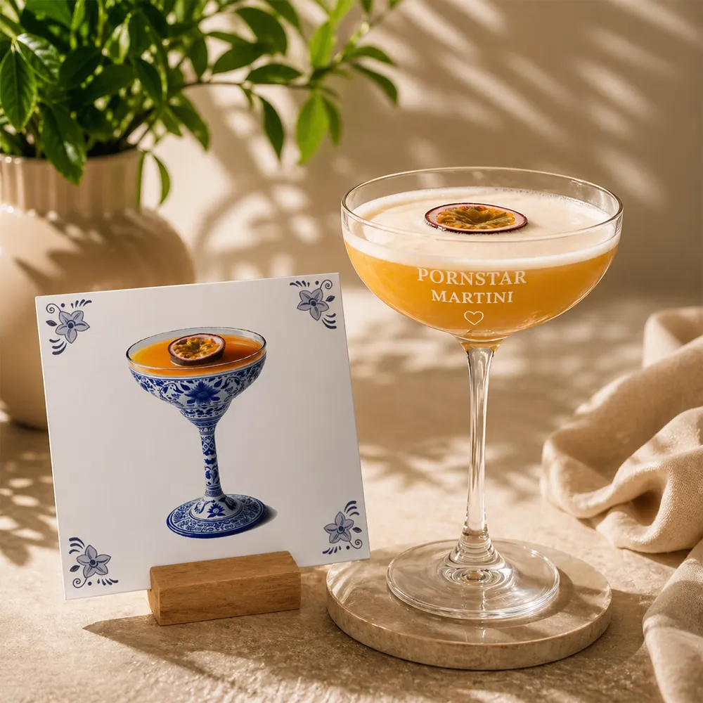 Pornstar Martini glas met naam gegraveerd + tegel Aanbieding