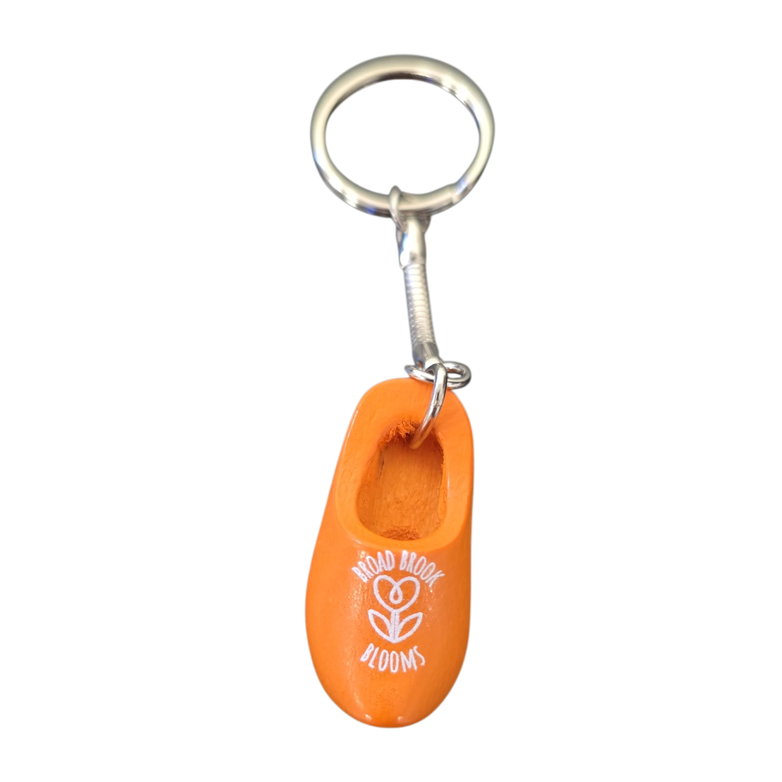 Een oranje sleutelhanger klompje van 4cm met het logo van uw bedrijf of vereniging.