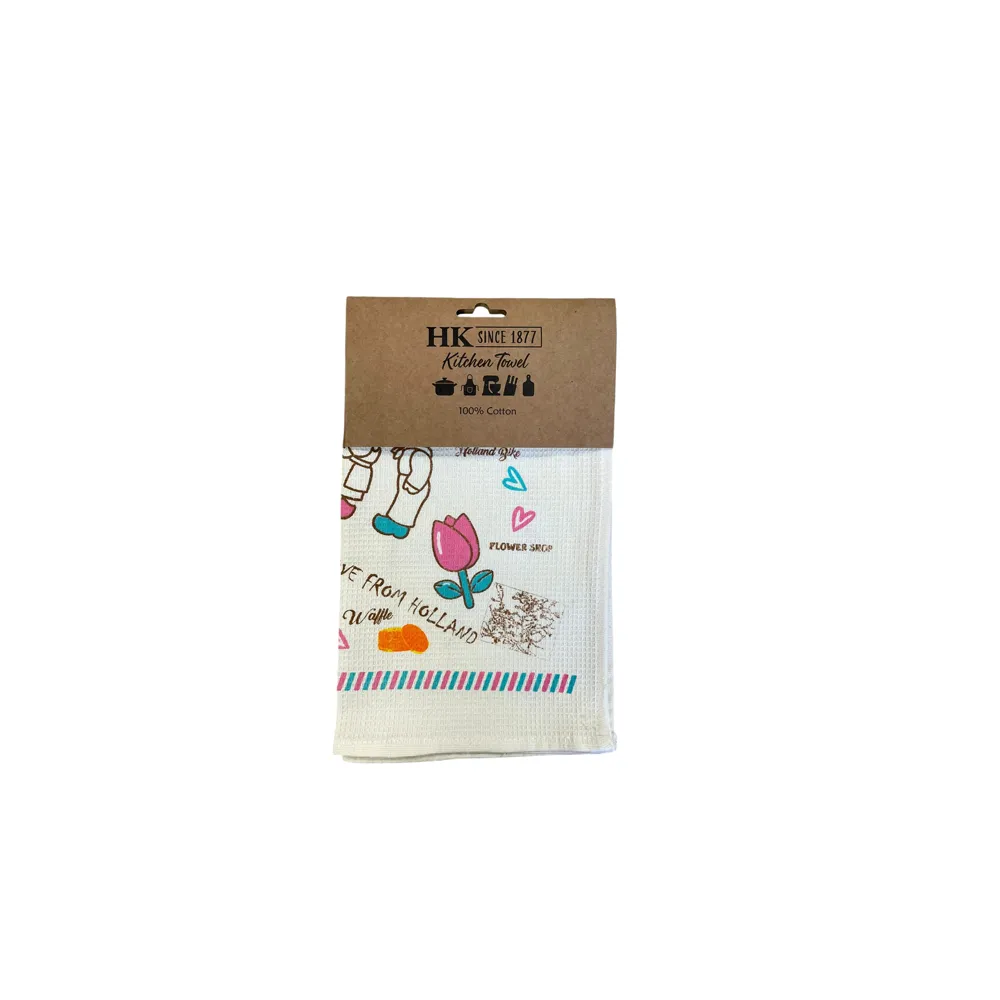 Op zoek naar een stijlvolle Theedoek Holland met een typisch Nederlands ontwerp? Of je nu particulier bent of een zakelijke klant, deze theedoek met Hollandse print is perfect als keukenaccessoire, relatiegeschenk of souvenir. Vervaardigd uit hoogwaardig katoen en voorzien van herkenbare Hollandse symbolen zoals molens, klompen en tulpen.