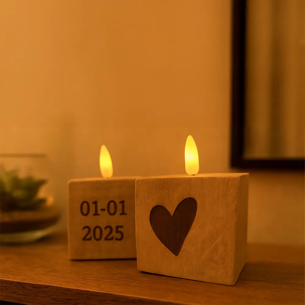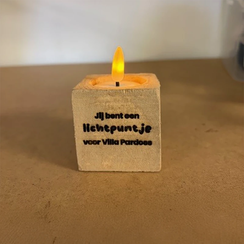 Waxinelichthouder met naam, datum of logo – Persoonlijk herinneringscadeau